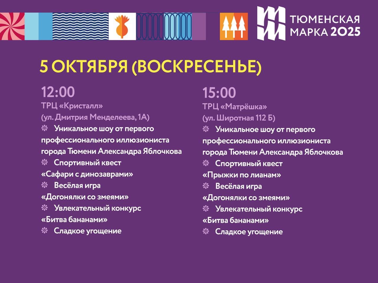 ️4 и 5 октября «Тюменская марка» проведет для горожан и гостей города активные выходные