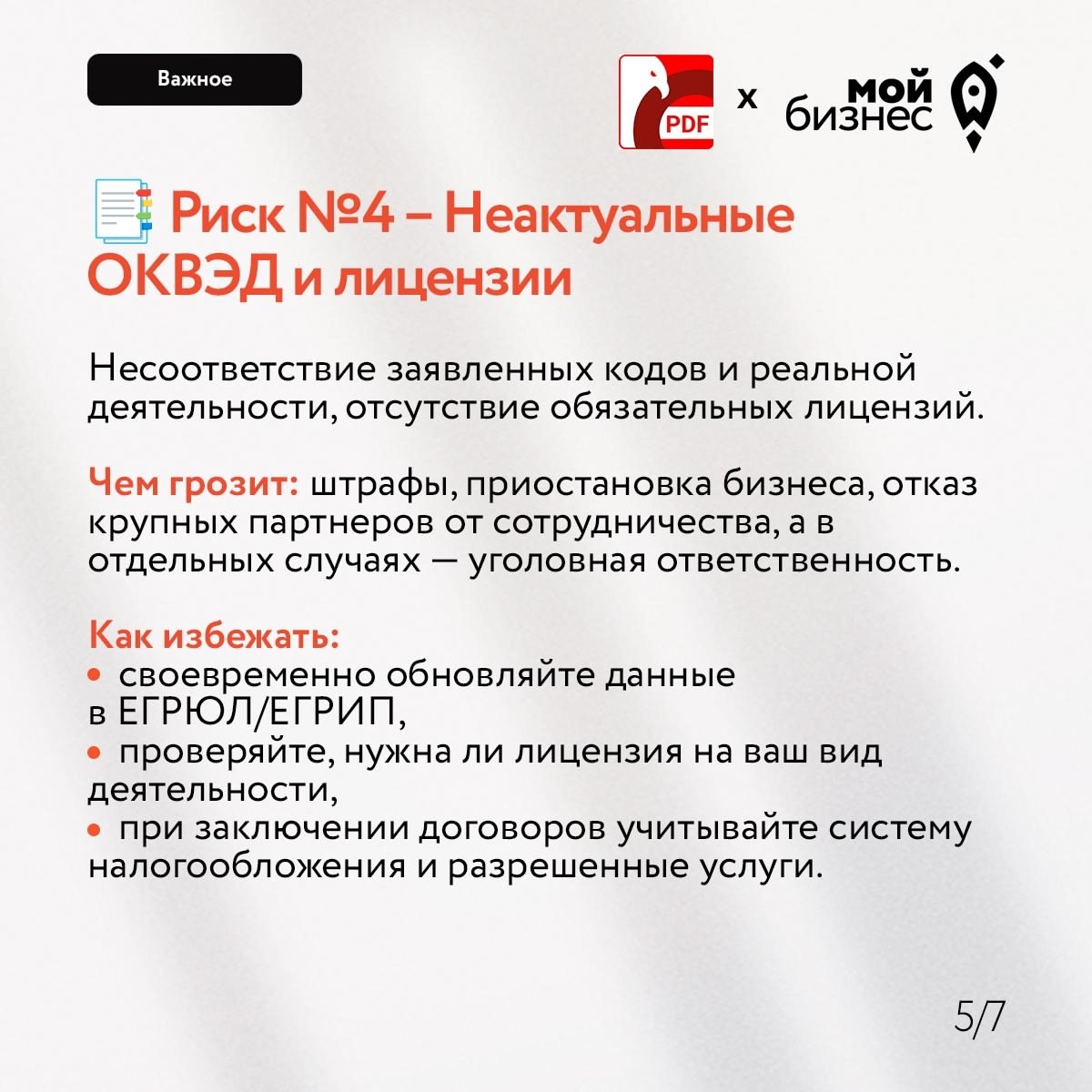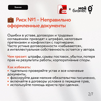 Каким рискам больше всего подвержен ваш малый бизнес? Ошибки в документах, «токсичные» контрагенты, споры с сотрудниками, неактуальные лицензии или онлайн-нарушения?