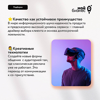 В карточках рассказываем о трендах, которые уже сейчас становятся ключевыми факторами устойчивого роста. Здесь и бессмертная классика, и новые решения для бизнеса.