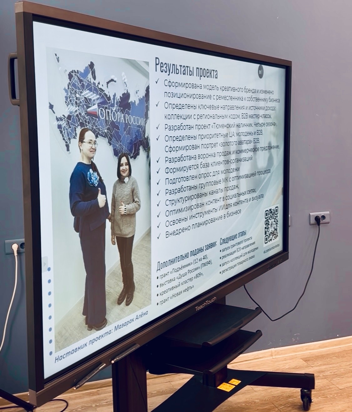 Про цифры. Некоторые участники зафиксировали увеличение среднего чека в 2 раза, рост выручки в 3 раза. Почти у каждого участника был персональный предприниматель-наставник. Каждый участник получил сертификат о прохождении программы, которые презентовала Мария Покалюхина - директор центра Мой бизнес Тюменская область.
