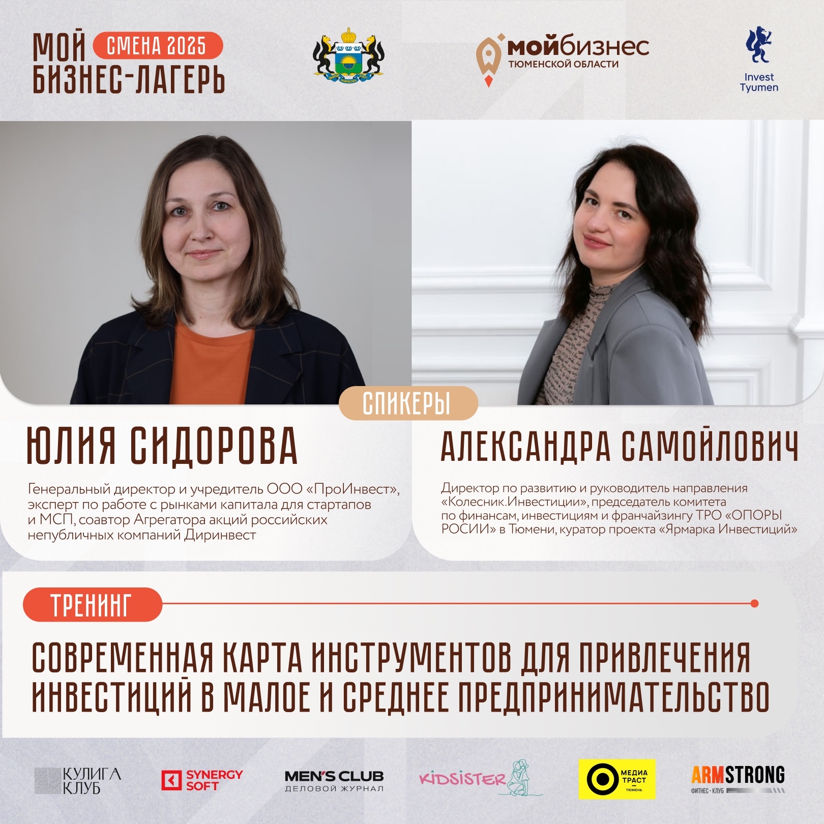 - Эксперты по инвестициям Юлия Сидорова и Александра Самойлович представят современные инструменты привлечения капитала
