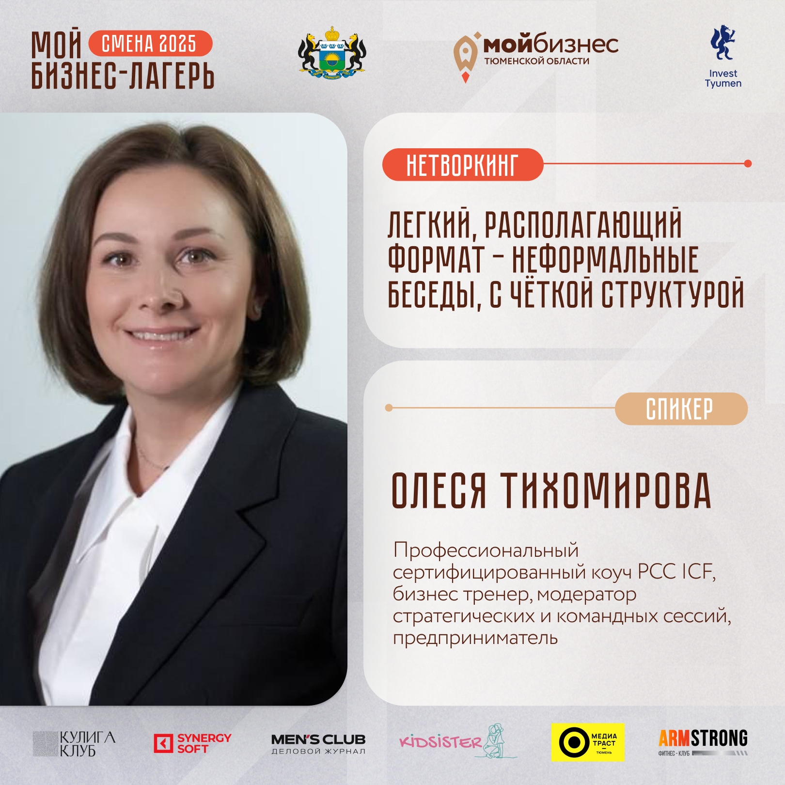 - Олеся Тихомирова проведет легкий и располагающий формат нетворкинга - неформальной беседы. Место, где каждая встреча может стать решающей