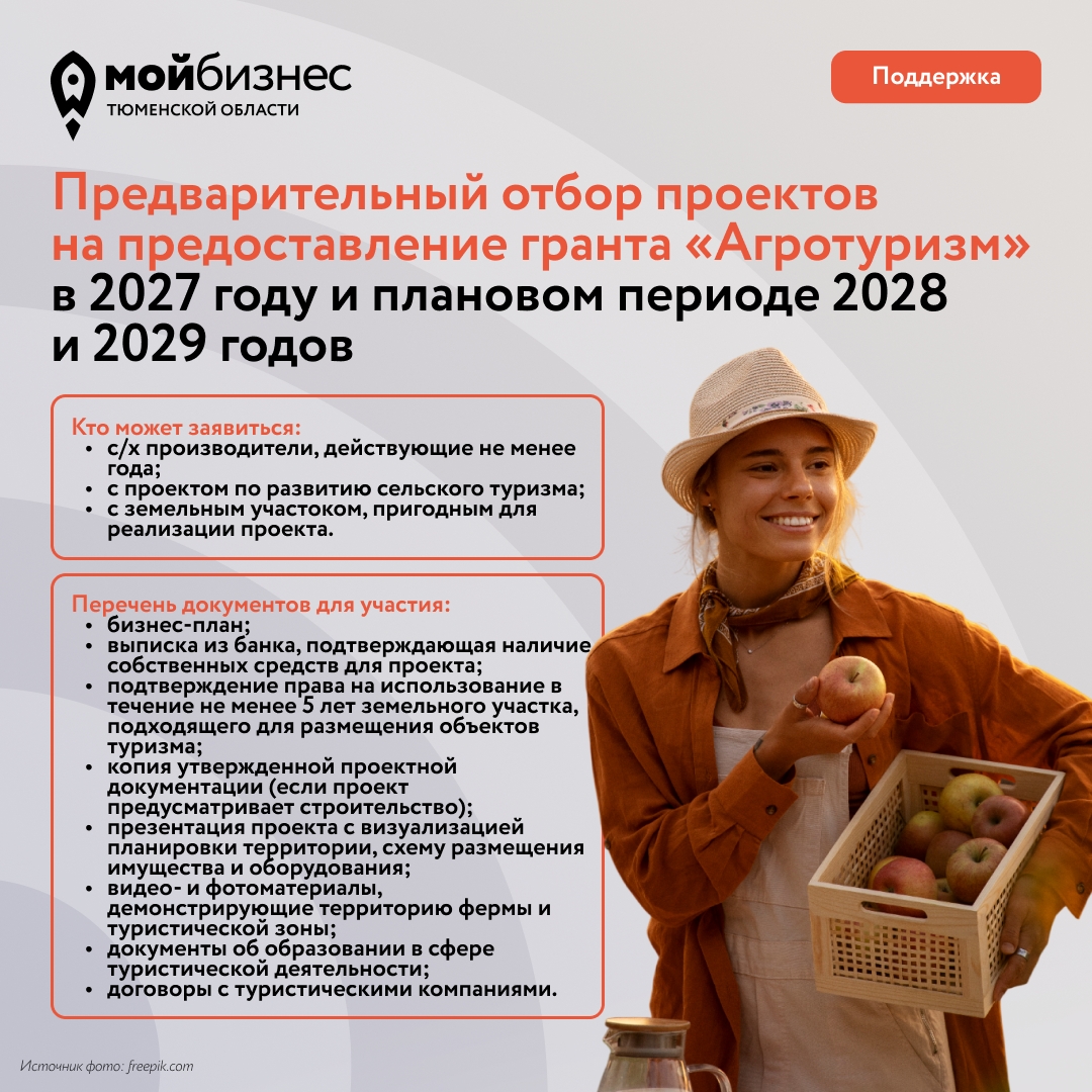 Сроки приема документов — с 6 по 30 апреля. Их нужно предоставить в Департамент АПК Тюменской области.