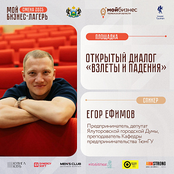 - Егор Ефимов — предприниматель, депутат Ялуторовской городской Думы, преподаватель кафедры предпринимательства ТюмГУ