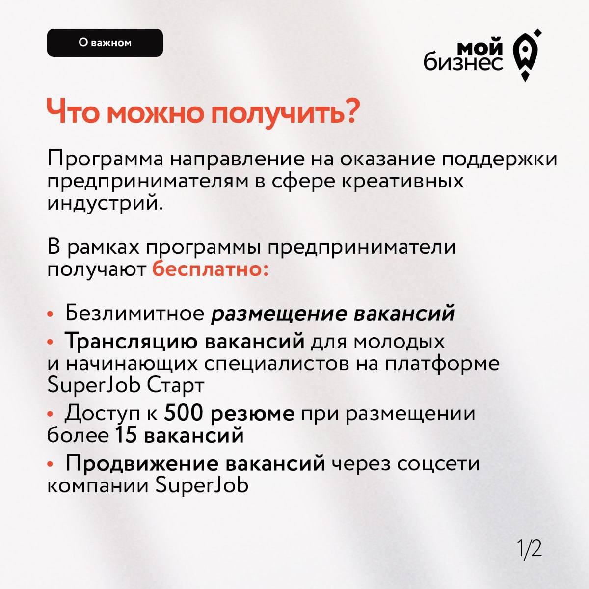Минэкономразвития России и SuperJob запустили первую партнерскую программу для поддержки креативного бизнеса.