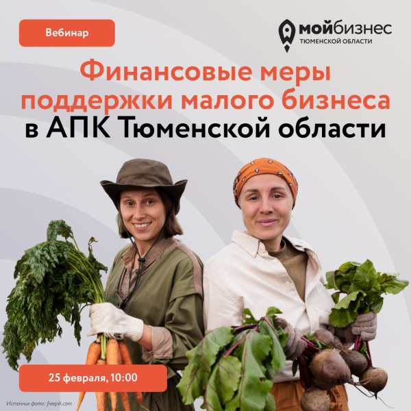 Приглашаем фермеров принять участие в вебинаре «Финансовые меры поддержки малого бизнеса в АПК Тюменской области в 2026 году»